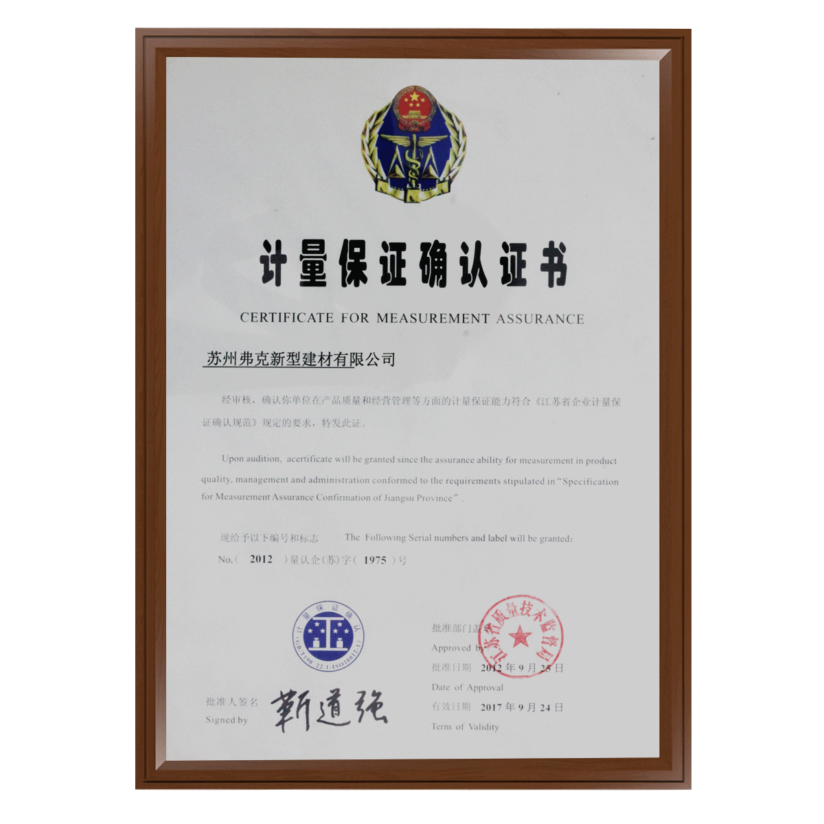 計(jì)量保證確認(rèn)證書